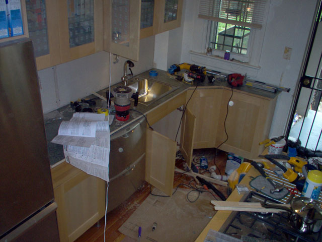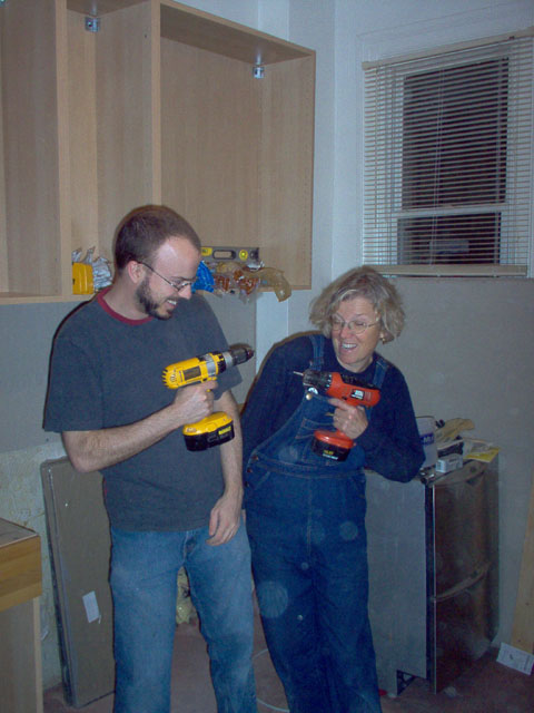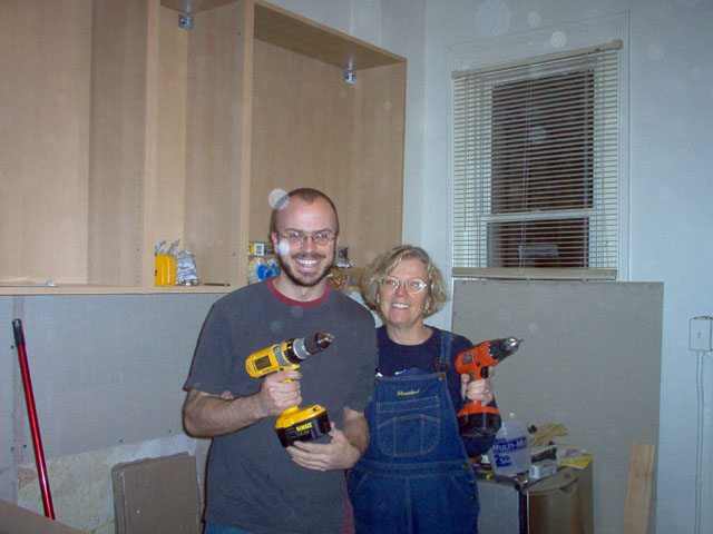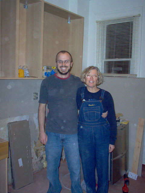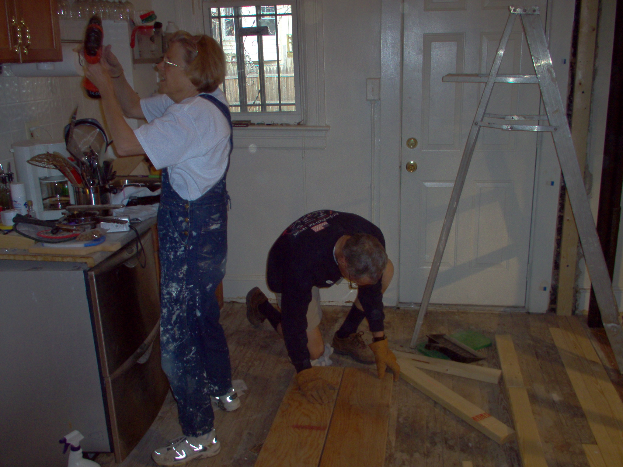 Mom and dad working on dis-assembling the old kitchen |