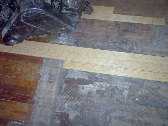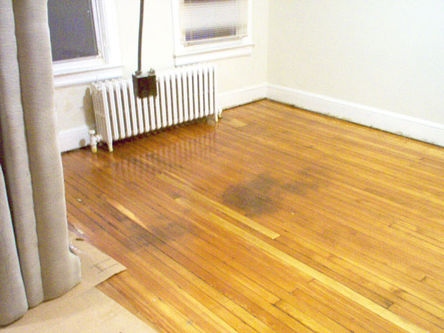 The floor, after it was refinished. A couple old stains in the floor add "character" |
