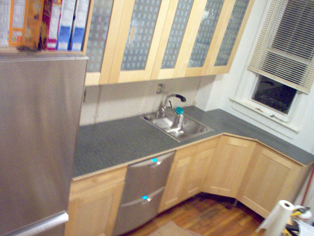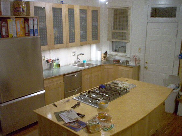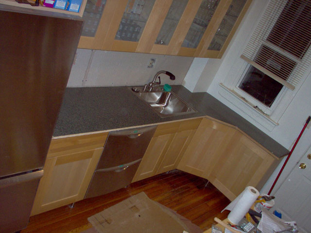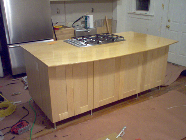 3/28/2004 The counter top has been finished, gas and electricity run, and cooktop installed. |