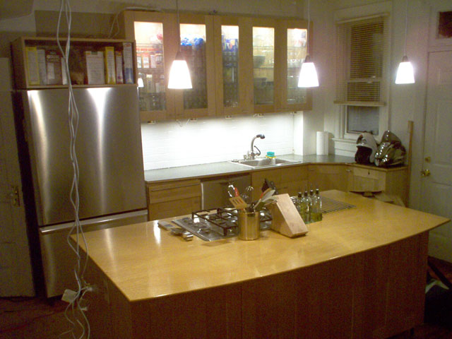 9/6/2004 Tile has been grouted and pendant lighting temporarily installed. |